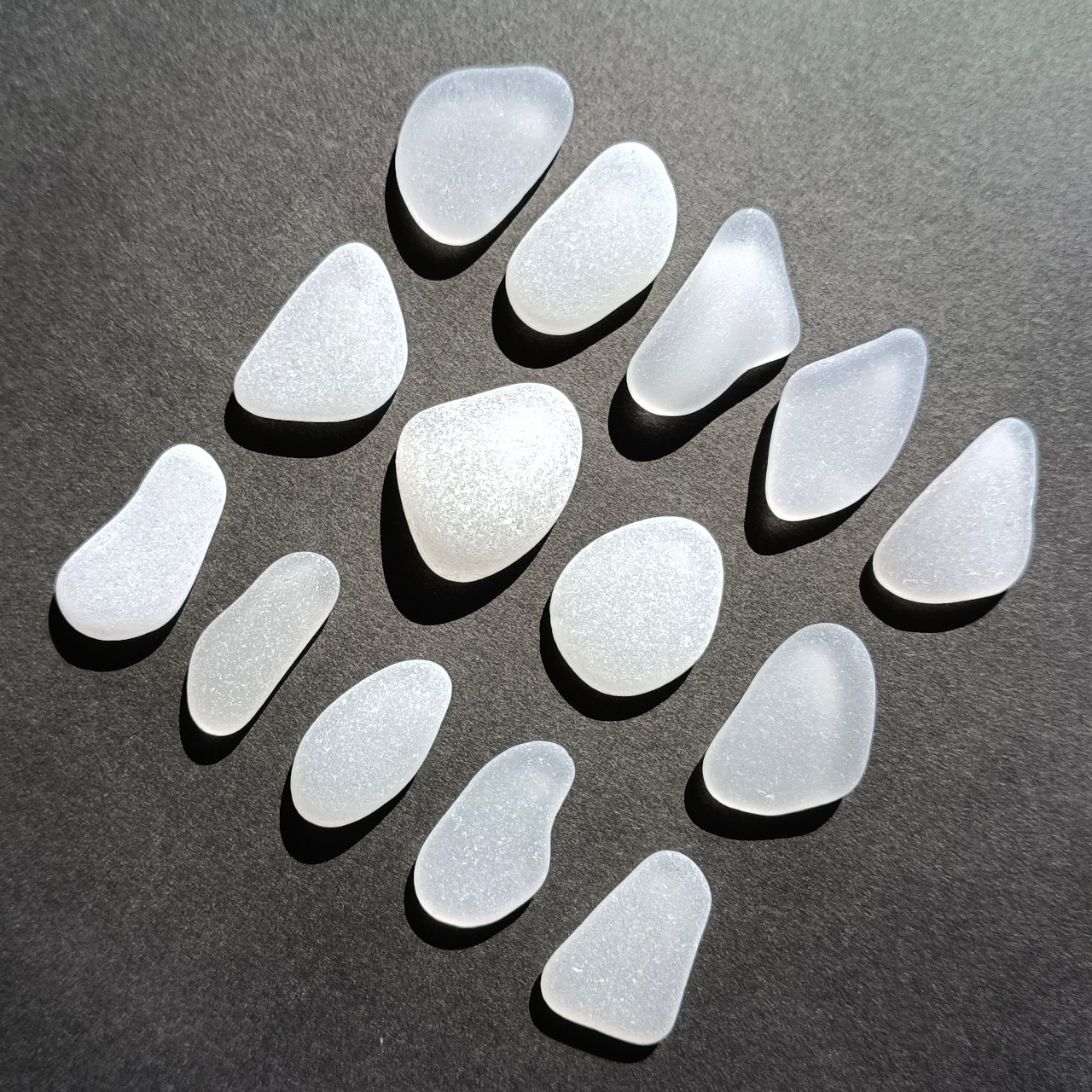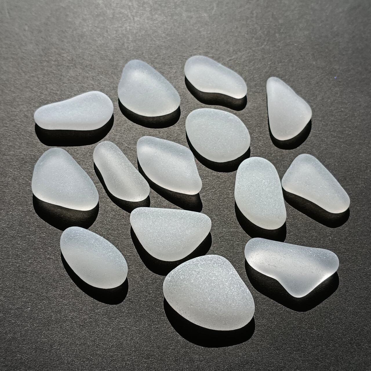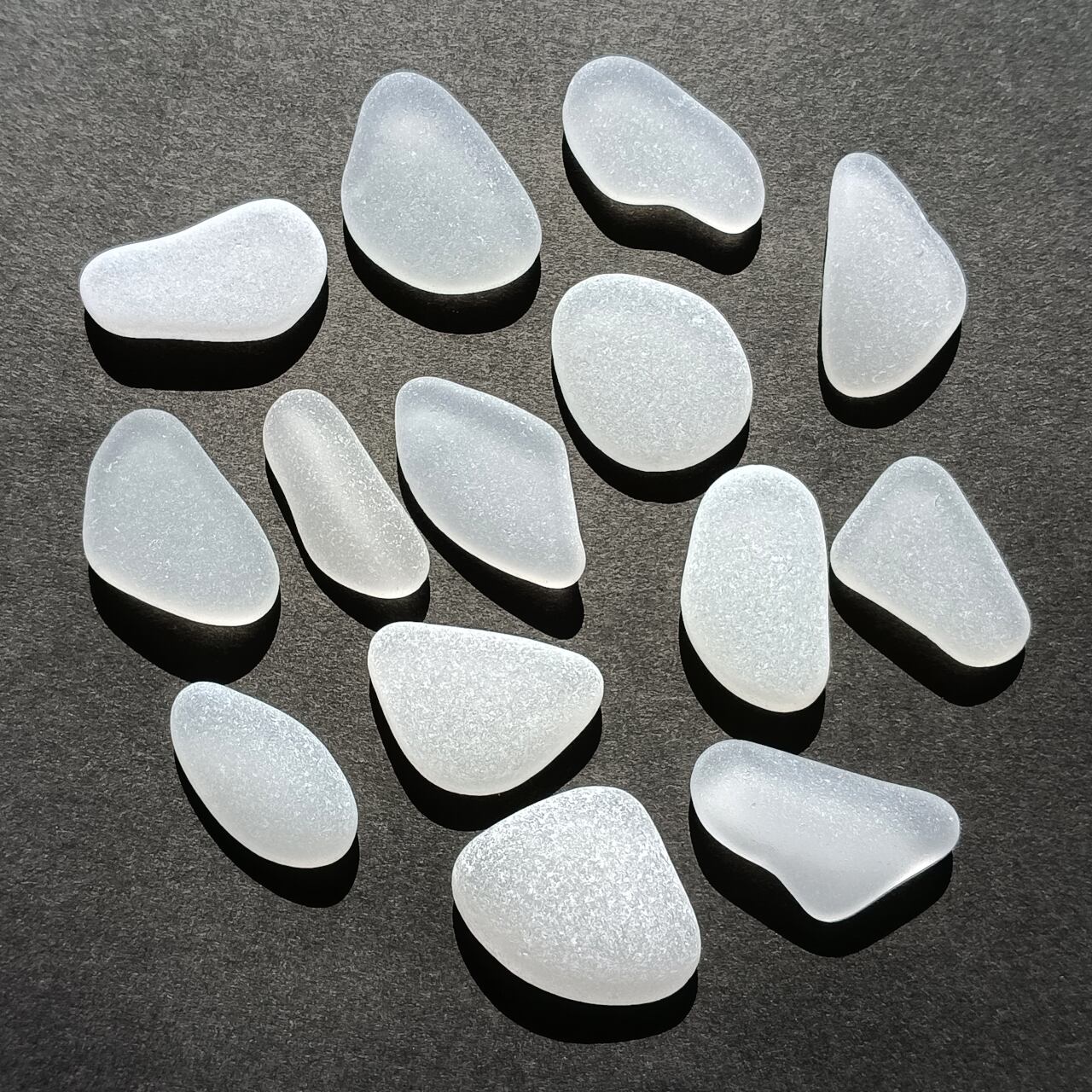 本商品は、最長部 約 2.5~3 cm の 白色系 シーグラス 14 個 約 50g にてお届けいたします。