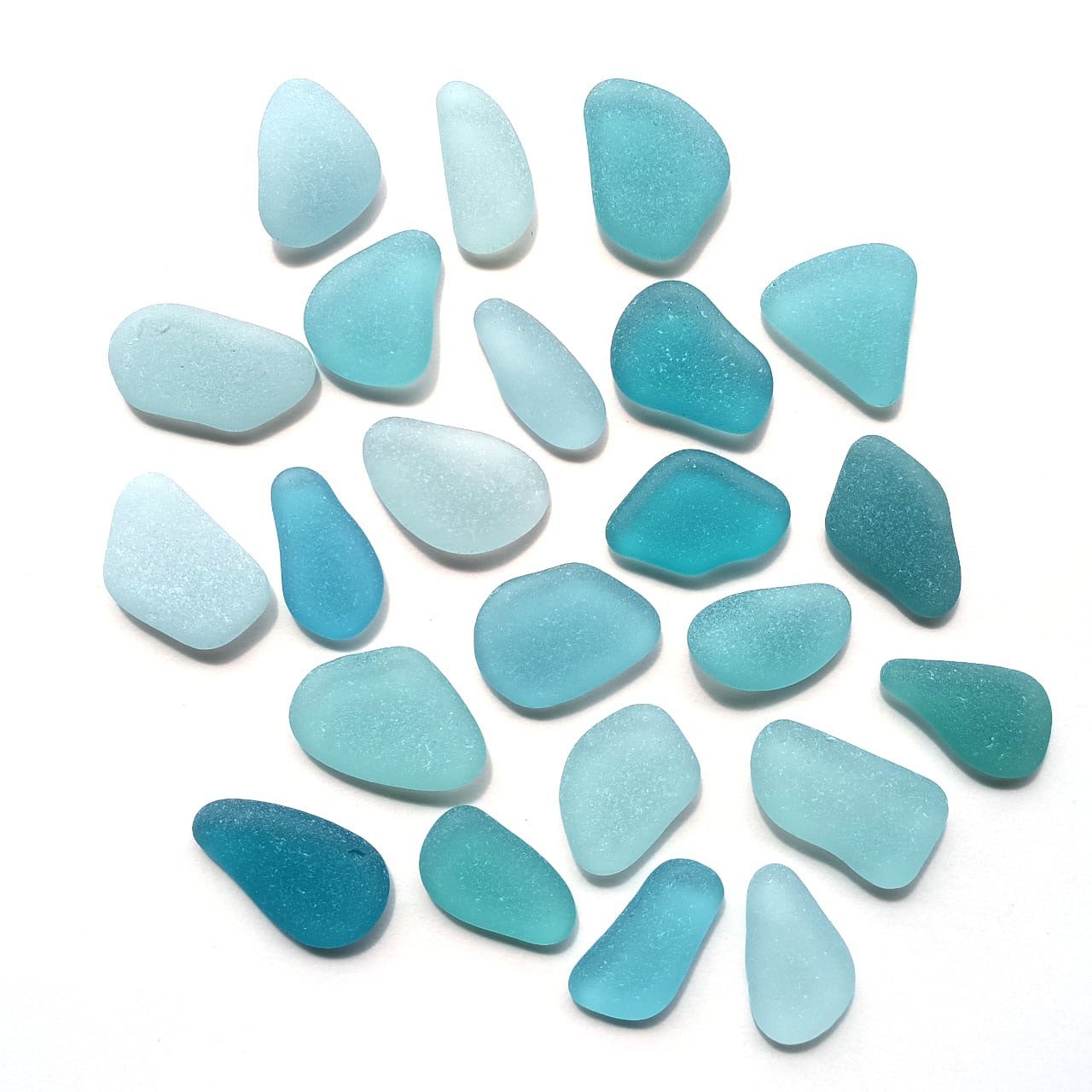 本商品は、最長部 約 2~2.5 cm の水色系シーグラス 23個 ・約50g のセットとなります。